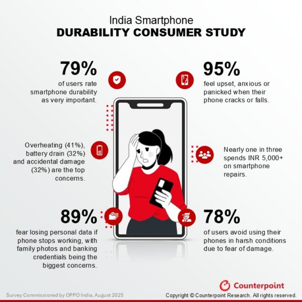 As per July–August “India Smartphone Durability Consumer Study 2025” conducted by Counterpoint Research and OPPO India, durability has a deep impact on both consumer choices and emotions.