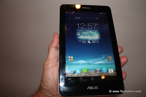ASUS has launched today the improved Fonepad 7 Dual Sim tablet in India at an event in New Delhi. The Fonepad 7 tablet comes with Dual-SIM support for calling on 3G network. The company claims that Fonepad 7 Dual SIM is the “world’s most innovative combination of mobile phone and tablet”. It is available in gray and white colors at MRP of Rs. 12,999.