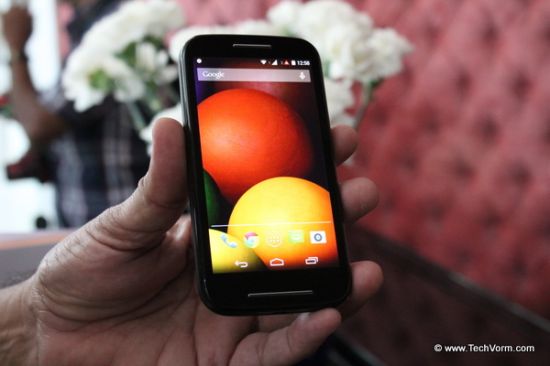 1. Moto E runs on pure Android Kitkat versio 4.4.2 with guaranteed update to next Android version. Motorola has announced that they update their devices with the latest version of Android in the shortest peroid of time and also claims that 88 percent of Moto G and 91 percent of Moto X users run Android 4.4 KitKat. Motorola updates its devices with latest versions in record time compared to other makers of smartphones like Samsung,LG and HTC. Since Moto E runs on pure Android OS, there are no customised software on it, which slows down the phone.