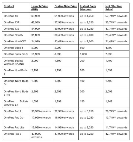 - On OnePlus Pad 3, customers can avail an instant bank discount of INR 5,250, alongwith a complimentary stylus (first three days of sale) for all variants.