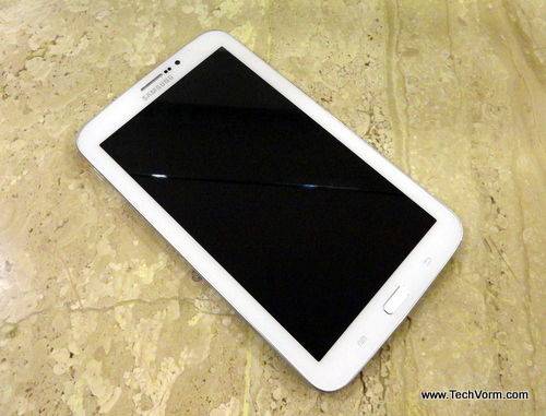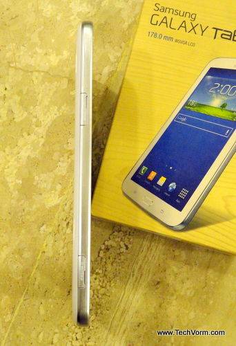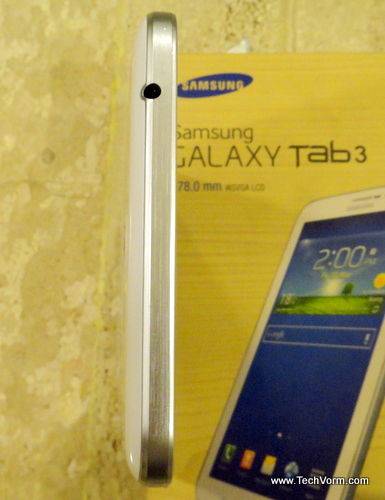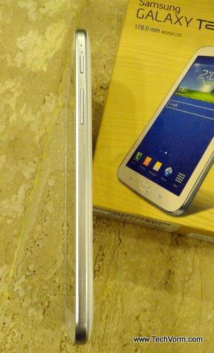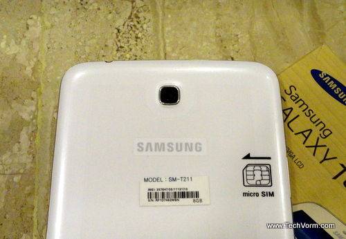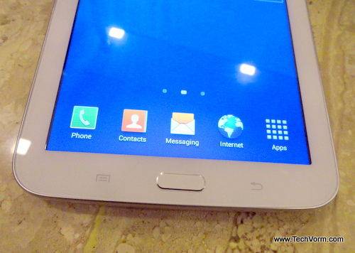 Like Galaxy smartphone, this tab has home button and two touch sensitive buttons below the display of the device. On the left side, there is Micro SD opening and Sim slot; the right side is having the volume rocker and power button. On the bottom of the Tab, 2 speakers, micro USB connector and a microphone are placed, and the top houses the 3.5 mm audio jack. The top front houses a 1.3-megapixel camera, a speaker and the light and proximity sensor. The 3 MP camera is placed on the back of the Tab.