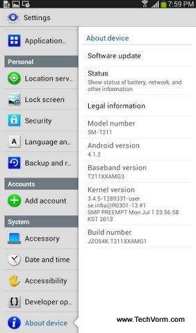 The Galaxy Tab 3 T211 comes with a 7″ inch TFT display with a resolution of 1024 x 600 (WSVGA). To keep the price low, Samsung had to put mediocre screen on this device. The screen is difficult to read in direct sunlight but this is a known problem with every TFT screen, and this tab is ideal for indoor use only.