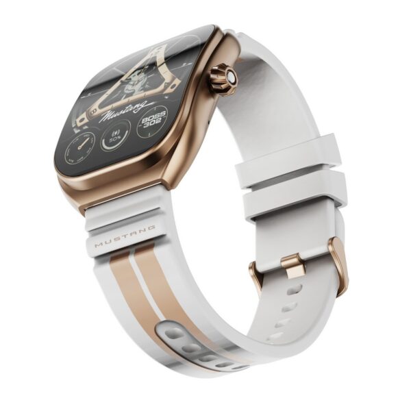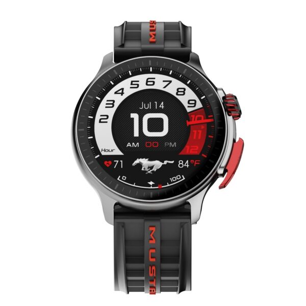 Mustang Muscle draws from Mustang’s aero-sculpted body design and performance heritage. The watch features a large curved display that flows seamlessly into the form, creating a smooth, aerodynamic profile. Navigation is led by an alloy-wheel inspired haptic-ring crown, designed to deliver intuitive and responsive control. The design is completed by a Mustang GT signature strap inspired by tyre tread patterns, featuring dual racing stripes and engineered for a secure, confident fit.