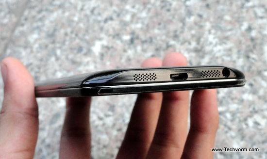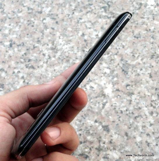 The device features on-screen buttons rather than any physical buttons for home, menu and back. Now this does give it a more cleaner look on the front but it also means that the effective screen size is reduced to 4.9″ inches (with buttons occupying roughly 0.2″ inch).