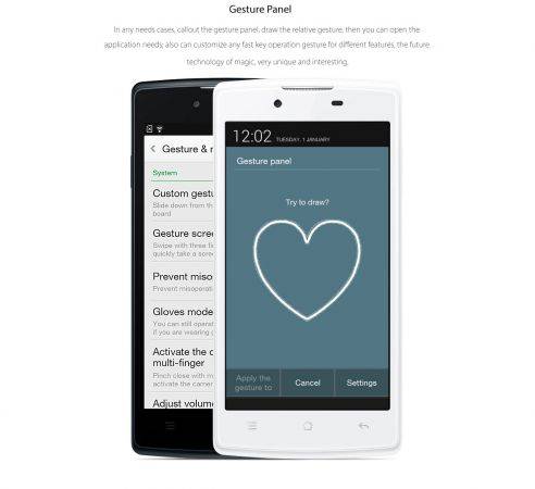 The Oppo Neo is being promoted for its gesture controls features. The gesture-based controls enable this smartphone to draw a circel to open the camera when the screen is off, and with double tap, the phone screen can wake-up. With this gesture feature, you can also draw figures on the gesture panel to directly go to an app assigned for the respective figure.These gesture controlled features are also used by other smartphone players including Lava and Micromax, on their smartphones.