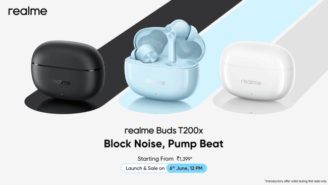 | realme Buds T200x | Moonlight White | 1,599 | 200 offer | 1,399 | Sale starts from June 6th, 2025 |