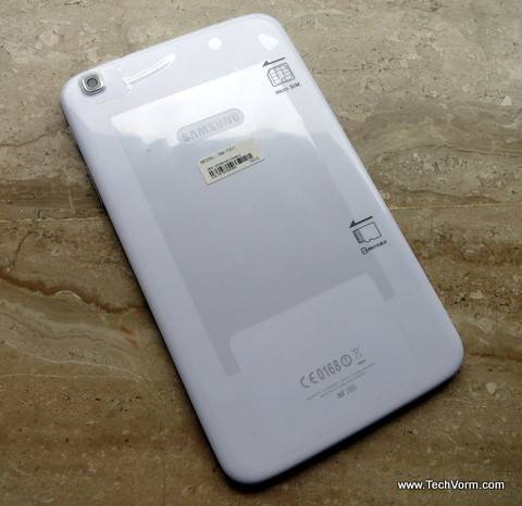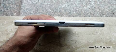Galaxy Tab 3 T 311 is just 7.4 mm thick, very light in weight, an so sleek that one can carry it in one hand. Although, if you have to watch movie or read an e-book for longer duration then you will have to catch it with both hands and this becomes tiring. In terms of overall appearance, it isn’t different from the latest Galaxy range of smartphones, the usual button placements (refer images below). Thin bezels (borders) give it a nice look and one can hold it comfortably with one hand, but not for prolonged duration of time. Back of the Galaxy Tab 3 looks refined and not prone to scratches. The rear of device is non-removable which essentially means non-removable battery. The microSD card and SIM card slots are located on the left side of the device.
