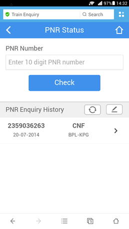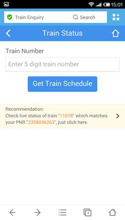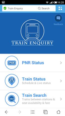 You can Find “IndiaTrain” at Top Sites or under Shopping & Utility on UC Browser for Android. You can check your PNR status online without any registration and are required to input your PNR number to get your train details. The browser remembers your enquiry history so you do not have to input your enquiry number next time you check the status. Instead, you get automatic status updates about your train, which you can also share with your fellow passengers through SMS.