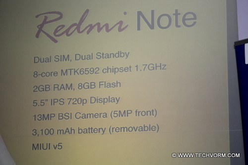 On the other hand, the Redmi Note phablet features a 5.5-inch 720×1280 pixel IPS-LCD display. Under the hood, it has a 1.7GHz octa-core MediaTek MTK6592 processfor, coupled with Mali-450MP4 GPU. It comes with 2GB of RAM and 8GB of internal storage with the provision to expand it upto 32GB via microSD card. This phablet also has Dual-SIM support with dual-standby.
