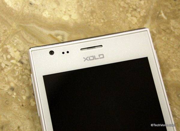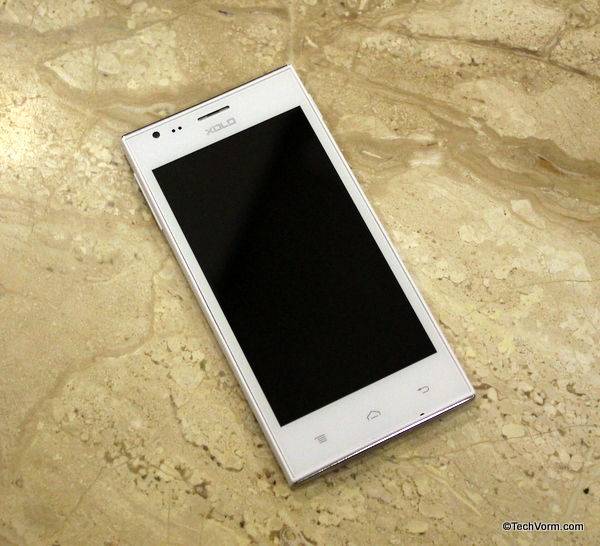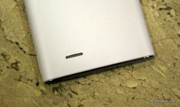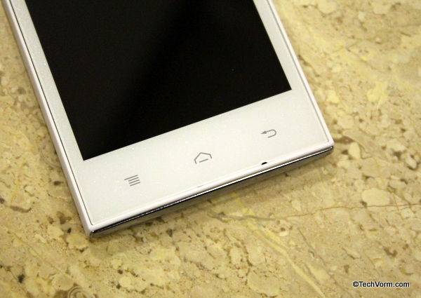 Doesn’t matter if a mobile phone costs Rs. 7,000 or Rs. 30,000, it has to carry some sense of design language to make sure that apart from raking in good specs, it is a looker as well. Xolo A600 does manage to grab your attention at the first instance. It isn’t a drop dead beauty that you just can’t resist but the all white, glossy front, white matte finish on the back and chrome finish material at top & bottom do give the device a certain sense of appeal. Moreover this has also to do something with the fact that all white body in itself makes any gadget stand out in the crowd.